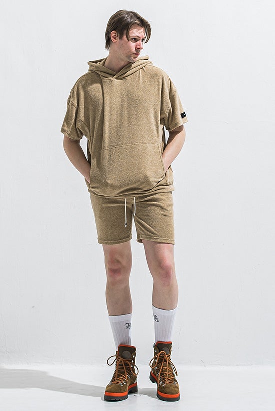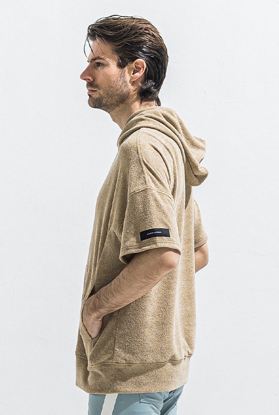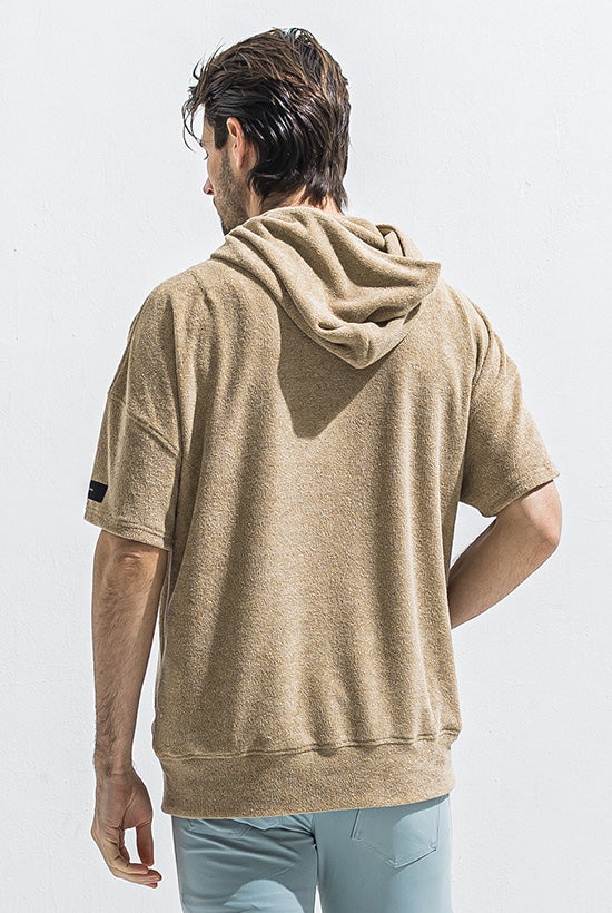 夏を彩るオーバーサイズ 半袖パイルフーディー