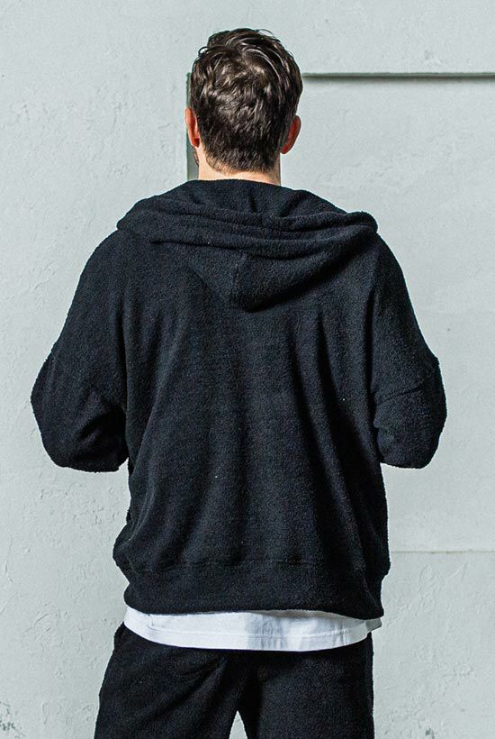MOLE YARN PILE zip loose hoodie[BLACK]