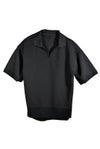 パブロをイメージしたオーバーサイズスキッパーポロ 高機能ポリエステルを使用し、 幾何学模様をブリスタージャガードで表現した 日本の素材と日本の縫製 素材はコットンでなく、コットンよりも軽く、高機能性を追求 ストレッチと吸水速乾、シワになりにくく、 型崩れがしにくいい多機能な素材です。 ルーズなのに美シルエットにパターンメイク 開いたラウンドカラーとセクシーなVゾーン パブロをイメージしたクラッシック中に今を感じさせるシルエットと素材感 【素材】 ポリエステル100%