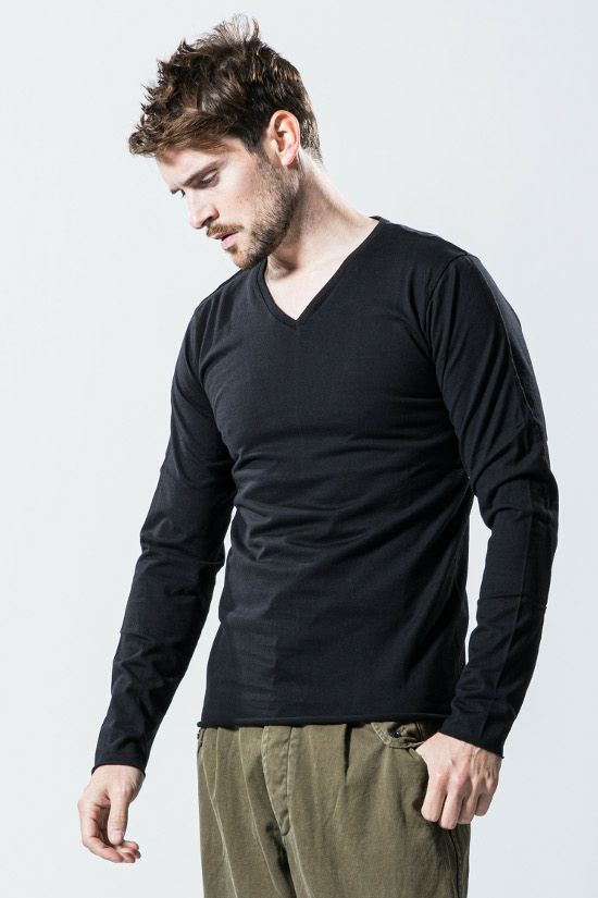 standard jersey V neck L/S/ [black]