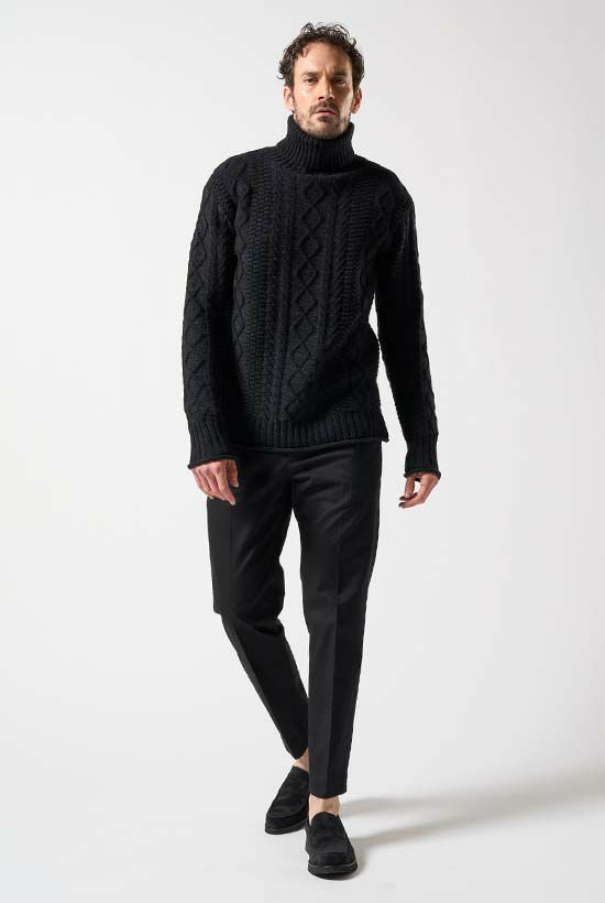 plating cable knit crew[black]